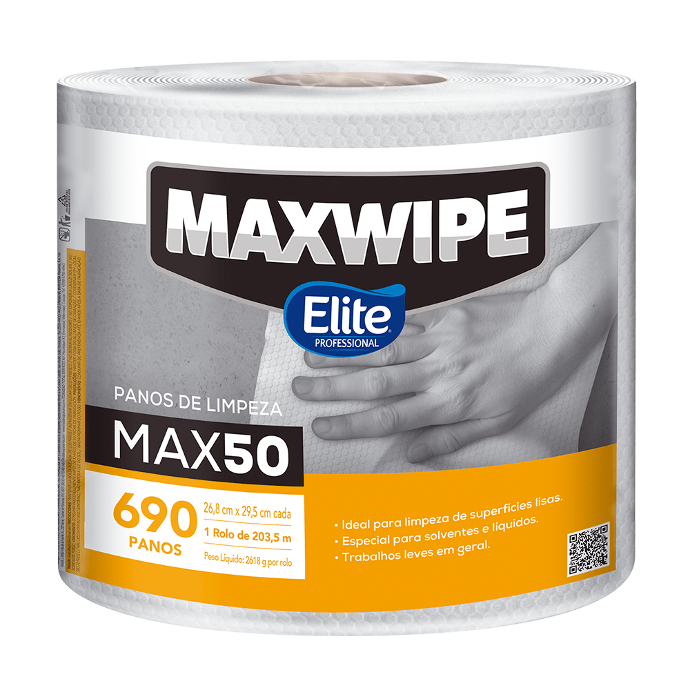 Pano não tecido (nonwoven) multiuso de alta performance para limpeza profissional. A tecnologia MAX50 proporciona excelente poder de absorção e baixa liberação de fiapos, permitindo uso seco ou úmido com água e químicos de limpeza. A bobina vem com 690 folhas destacáveis, otimizando o rendimento em rotinas de alto consumo.